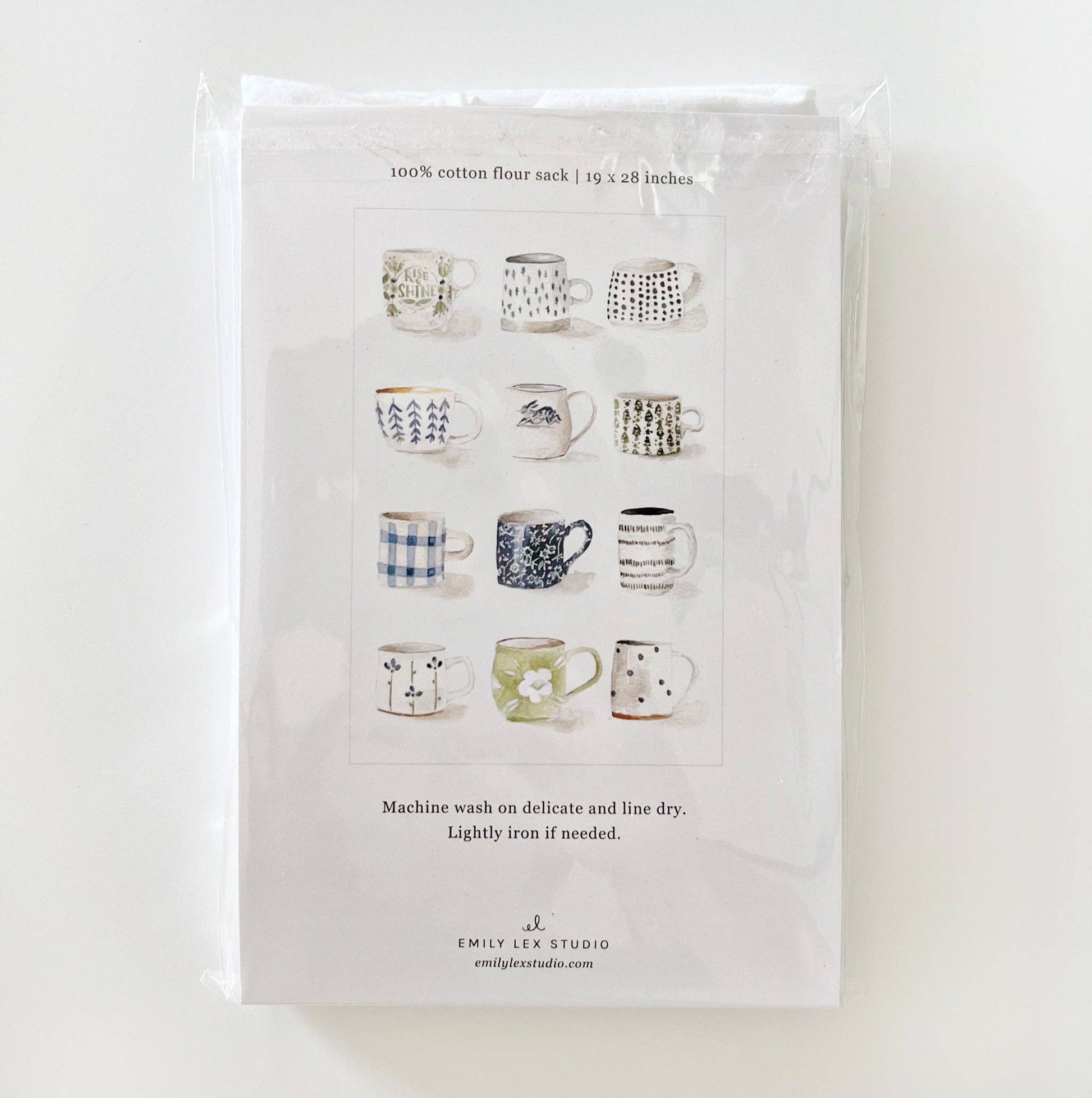 Add a touch of delight to your kitchen with this 100% cotton tea towel. Cheerful mugs cover the towel making it perfect for gifting, washing up, lining a basket, or displaying in your kitchen for a splash of color.