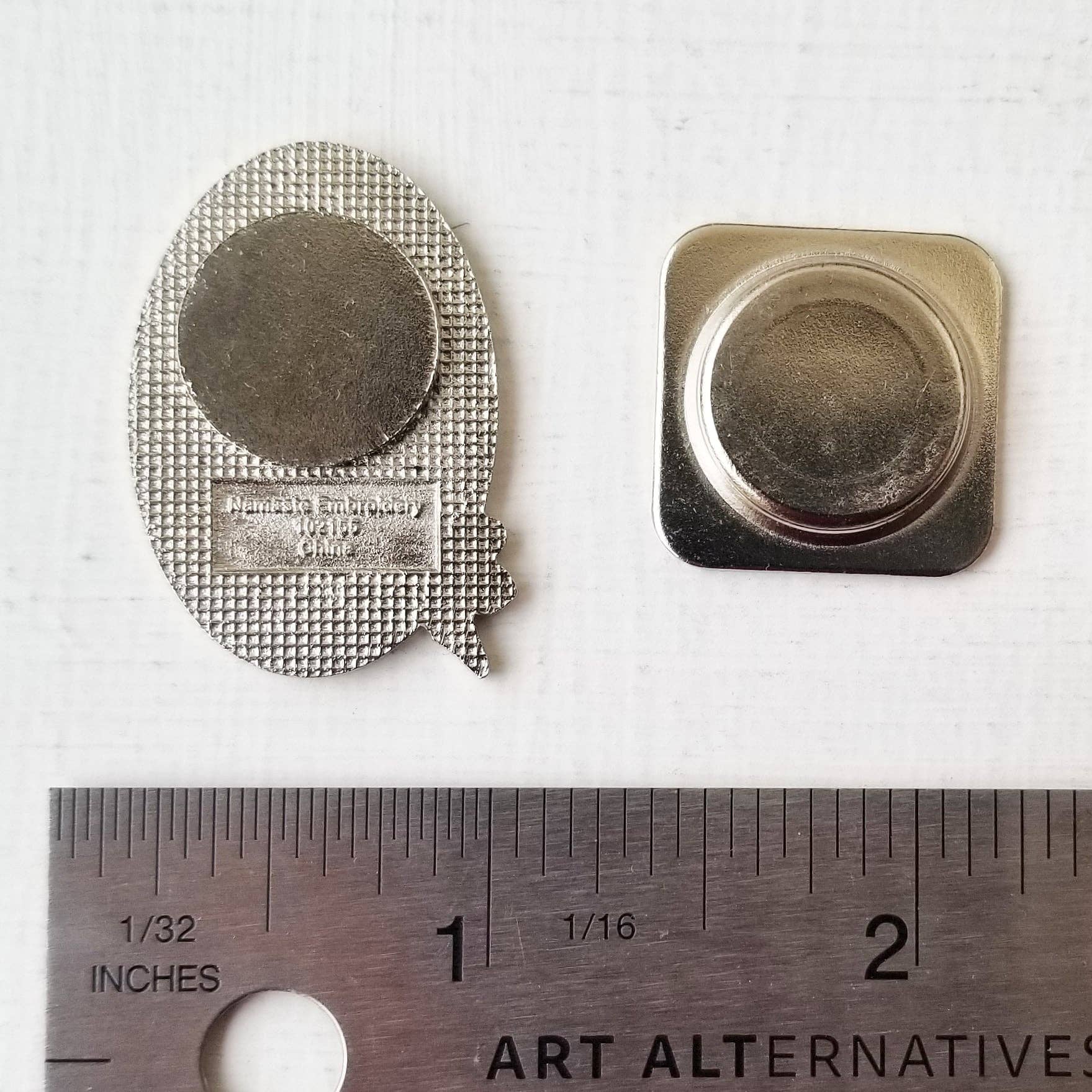 Keep track of your needles with this chickadee needle minder. This sweet magnetic pin is 1.25 inches tall and is made of hard enamel with pretty raised silver colored plating. The back has a removable magnet for you to sandwich your needlework fabric.
