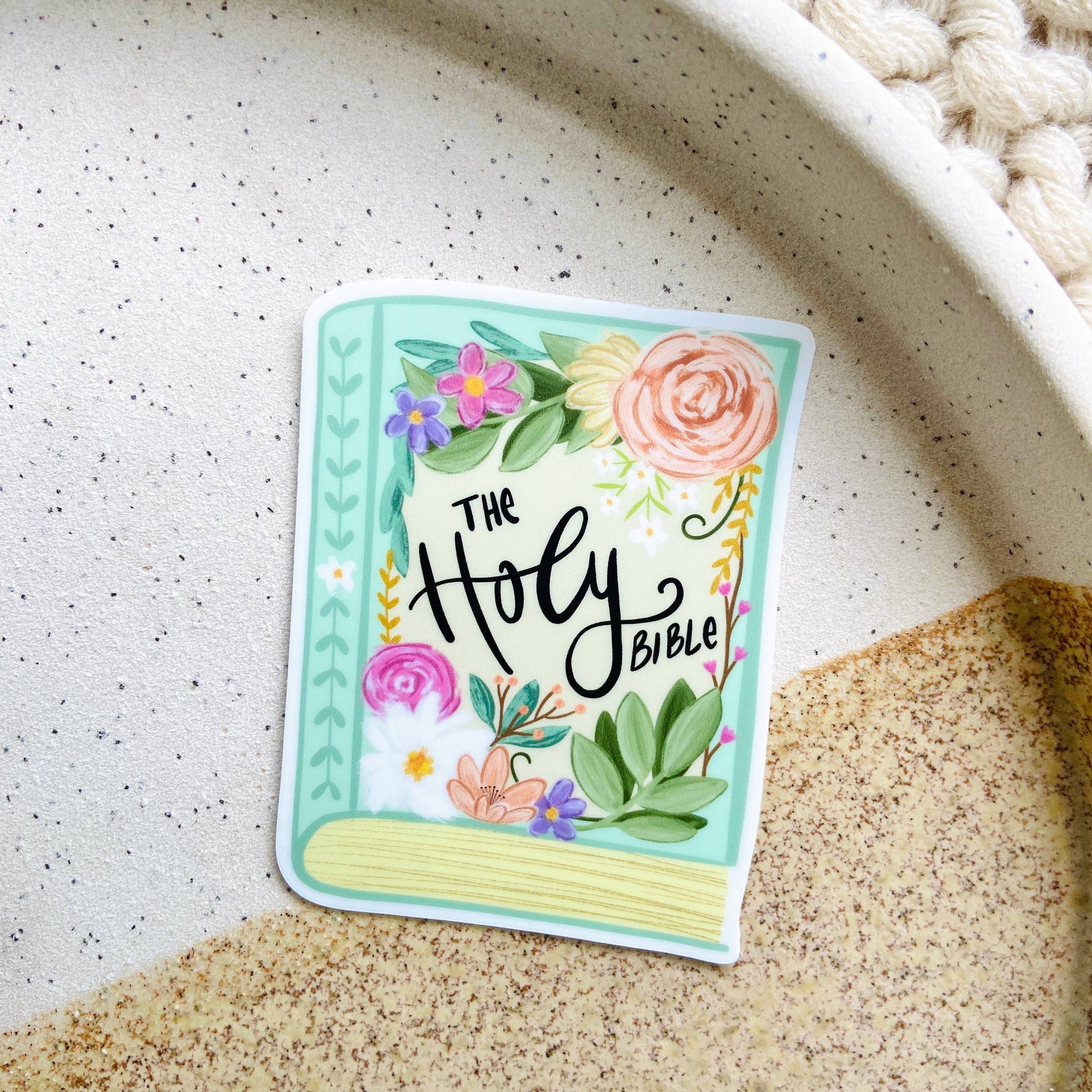 Beautiful Holy Bible floral sticker! Boho illustrated flowers and hand lettered script adorn this mini Bible! A whimsical sticker that will brighten up water bottles, laptops, planners, happy mail and more! This design has a coordinating magnetic bookmark in another listing. Perfect for bookshops and Christian gift stores!