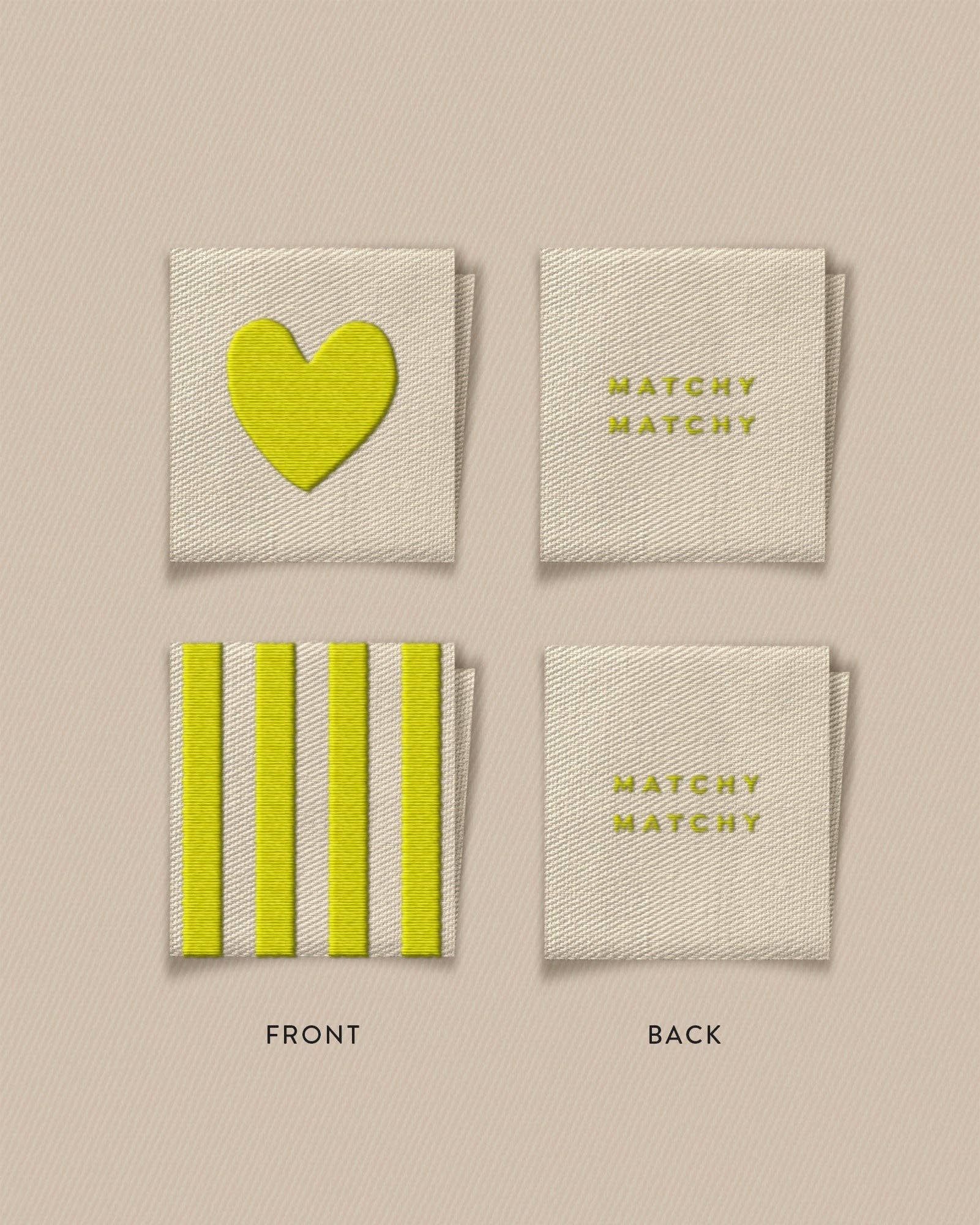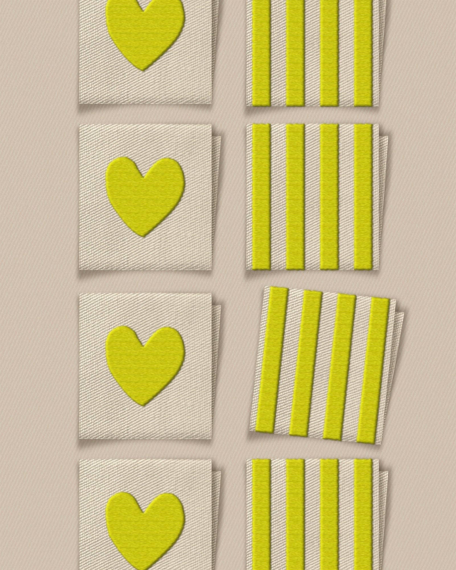 Matchy Matchy Sewing Club - Citron Heart and Stripe Square Garment Labels