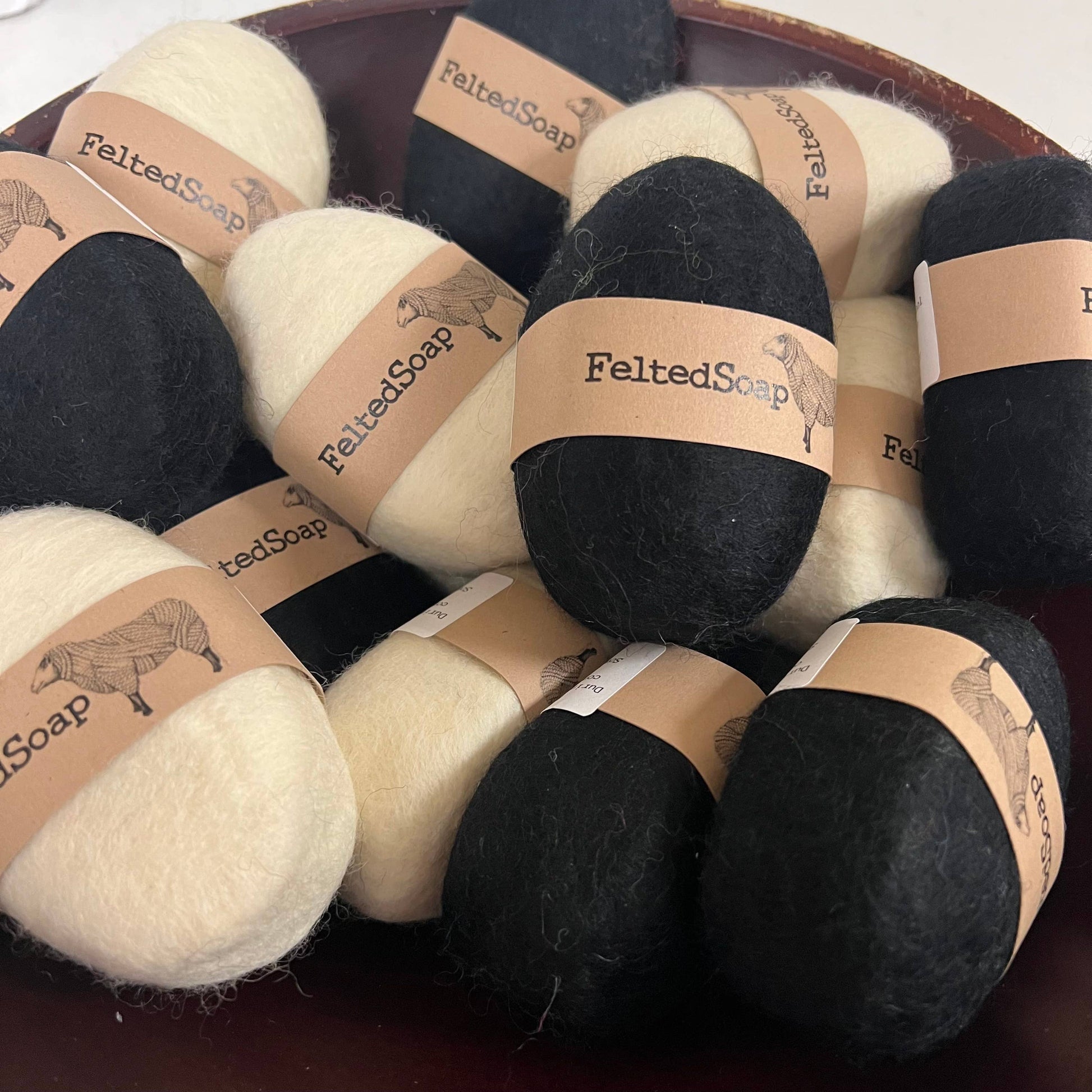 Twisted Purl LLC - Felted Soap Solid Black & Solid White 12 Pack Fun Soap Gifts